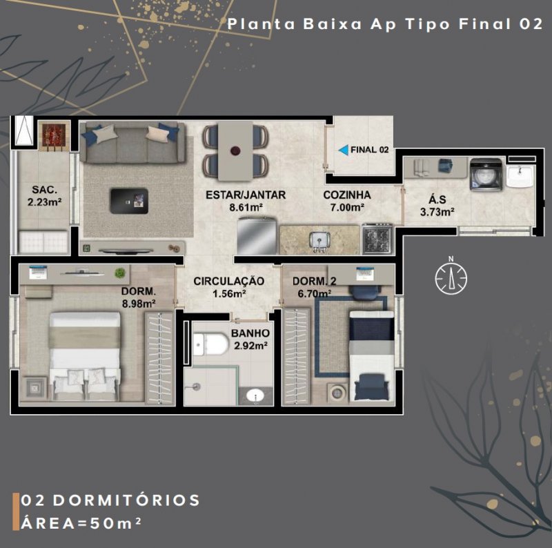 - Área Privativa: 50 m²
