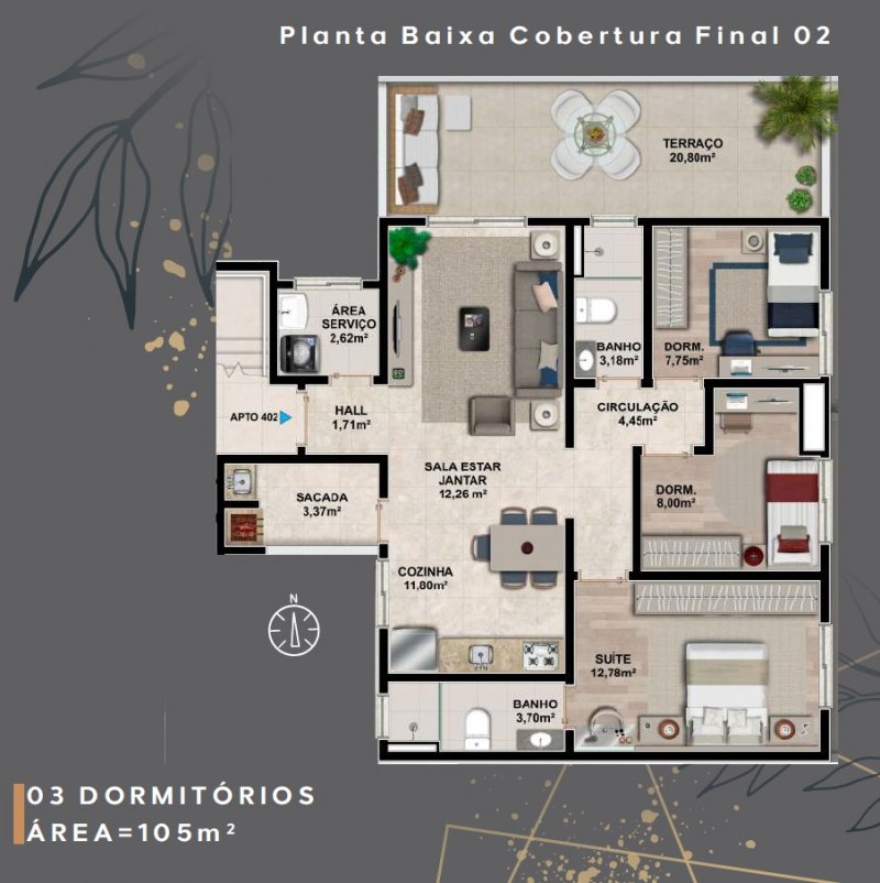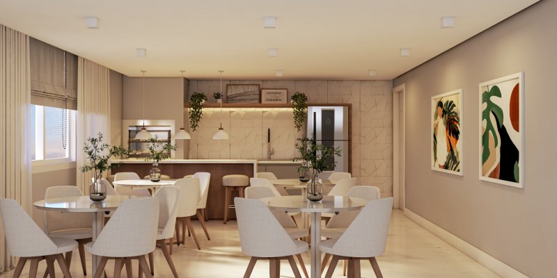 Com opção de apartamentos de dois dormitorios, dois dormitorios com terraço e uma linda cobertura de tres dormitorios (sendo uma suite); acabamento diferenciado, piso laminado nas áreas quentes e porcelanato nas áreas frias, espera para água quente, espera para split em todos os dormitorios e sala, rebaixe de gesso em todo o apartamento, sacada com churrasqueira.