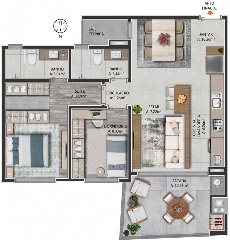 - Área Privativa: 83,17 m²