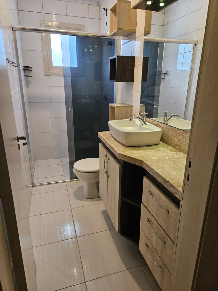 Sobrado Duplex com 3 dormitórios, área de serviço ampla com churrasqueira, garagem para 2 veículos, forro em PVC, piso vinilico, ficam moveis de banheiro e alguns armários de cozinha. Escada de Madeira central, sala e cozinha conjugadas. Porão eletrônico de grade. Piso cerâmico interno e na garagem.