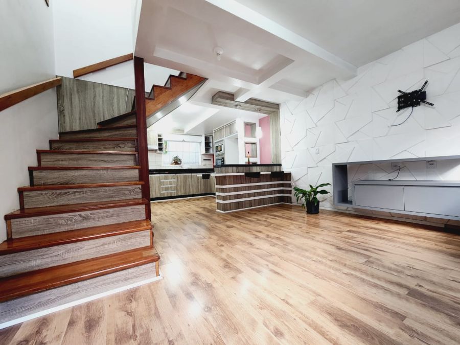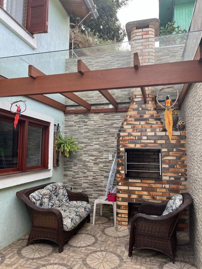 Sobrado com 2 dormitórios, churrasqueira em quiosque com pergolado e fechamento em vidro, Total segurança próximo a áreas de preservação, em rua muito sossegada.