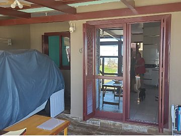 Casa de praia geminada semi mobiliada em ótima posição solar, na praia de Arroio do Sal. Possui 2 quartos, garagem coberta e pátio. A 1,2 Km do mar.